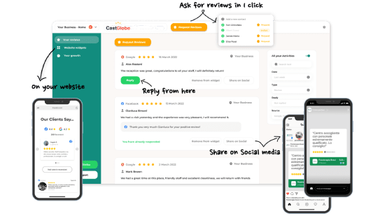 With CastGlobe Reviews, it's never been simpler to keep tabs on your business' performance. Our tool brings all of your online reviews into one convenient dashboard, allowing you to view real-time customer feedback across multiple platforms like Google, TripAdvisor and Facebook. Compare ratings quickly and respond with ease - check out the power of CastGlobe now!