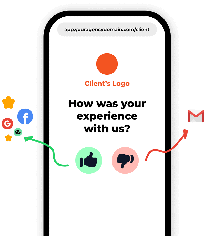 Send happy clients to review on Google or other sites. Protect reputation from unhappy clients.