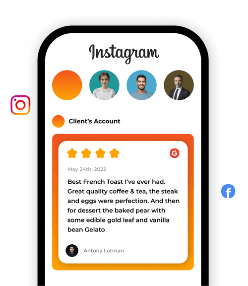 Generate and share posts for Instagram and Facebook with customers' reviews.